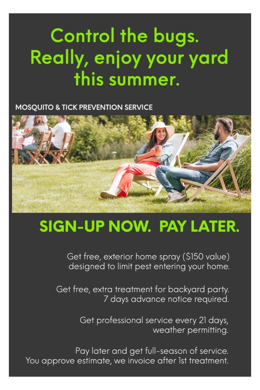 We do so much more than Tick & Mosquito Prevention including; but not limited to, mice only, rats only, ants only, 1X sprays, etc. If you bundle services, you save.